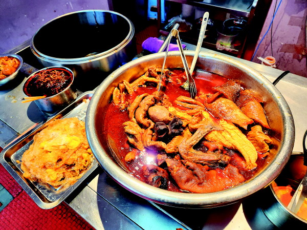 开店后,陈柏年一直亲力亲为地打理。他表示,在柳州,螺蛳粉店提供的卤味种类都很多,但桂林的螺蛳粉店卤味相对单调。“我之前也有做烧卤的经验,所以就尽可能丰富店里的卤味品种。”这几年,他也根据桂林食客的口味,不断调整店里卤味的种类。