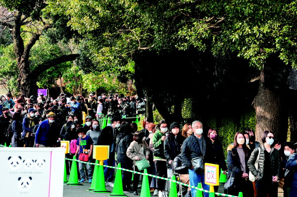 2月19日是上野动物园开放参观“香香”的最后一天,中签的人们排起了长队向“香香”道别。