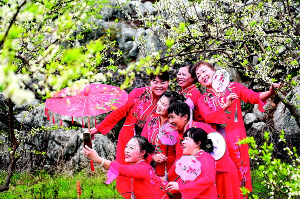近日,恭城大岭山上连片的李花盛开,洁白的花瓣似雪挂满枝头,白茫茫一片犹如童话世界,美丽的景色引来众多游客赏花踏青。记者李凯 摄
