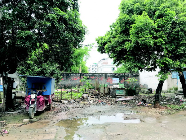 改造前小区积水、种菜的卫生死角。(通讯员谭桦供图)