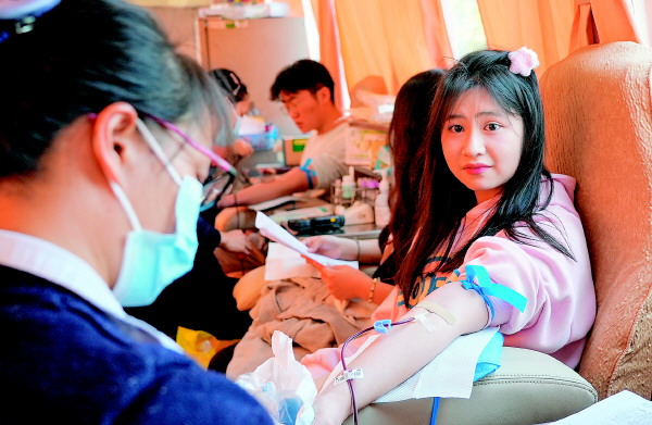 3月2日,青年志愿者参加义务献血活动。记者李凯 摄