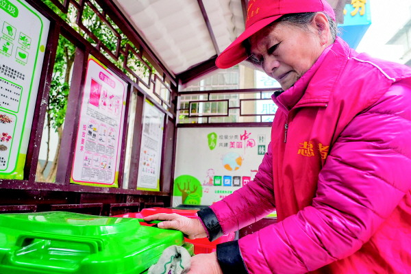 3月1日上午,志愿者在秀峰区一社区打扫卫生,美化环境。记者滕嘉 摄
