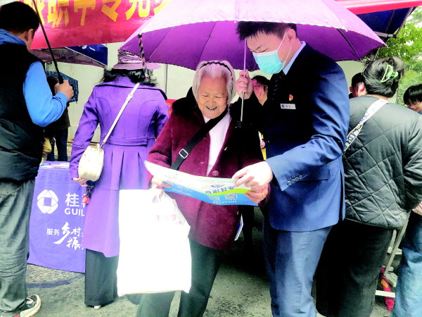 春江社区学雷锋志愿活动中,桂林银行虞山桥支行志愿者宣传防电信诈骗知识。通讯员邱林秀 摄