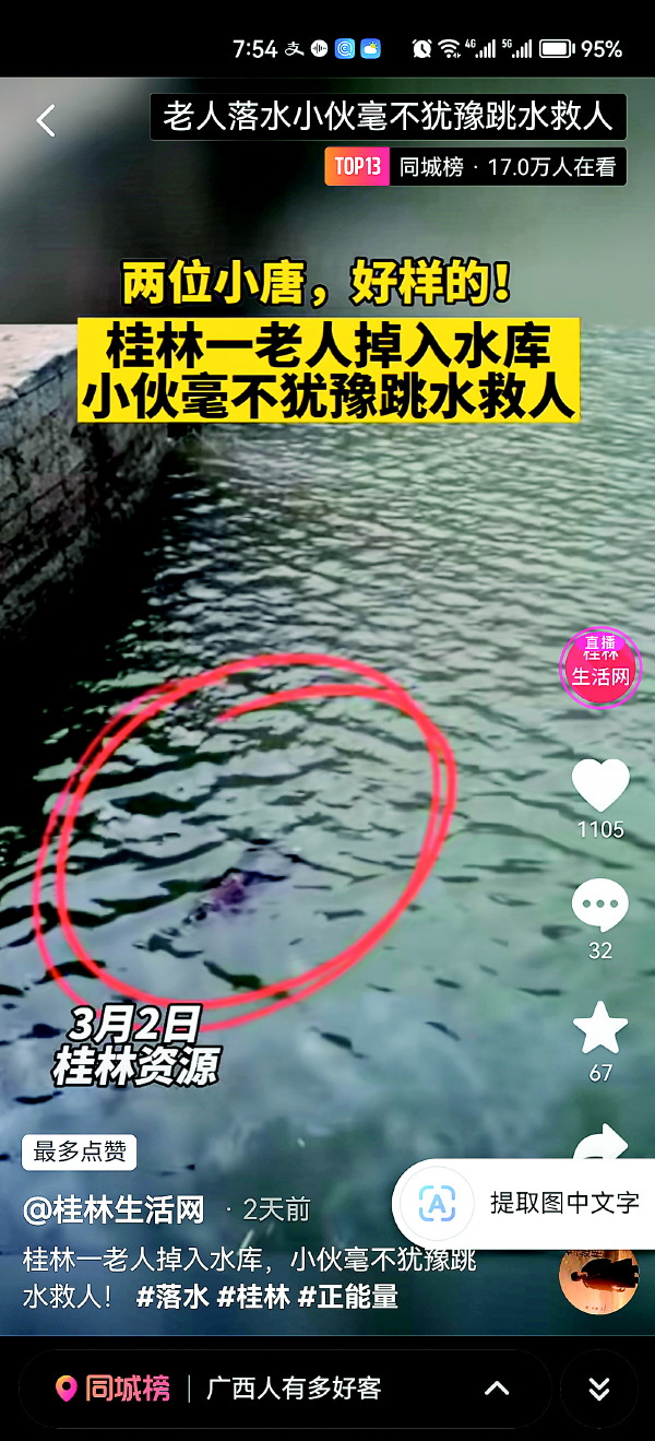 截至3月5日,该视频依然是抖音短视频平台桂林本地同城榜的第13名,有超过205万的浏览量。
