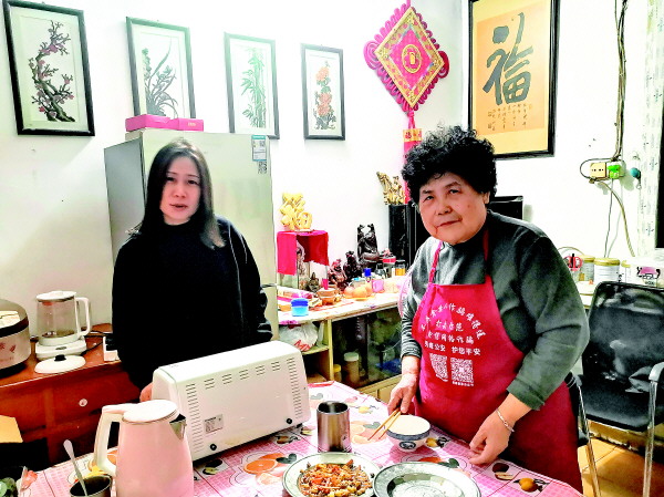 朱桂琴跟蒋莉一起准备晚饭。 记者石艳红 摄
