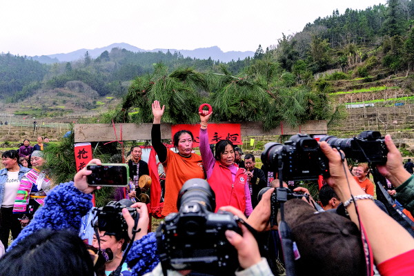 摄影爱好者的镜头聚焦抢花炮女子组的胜者。