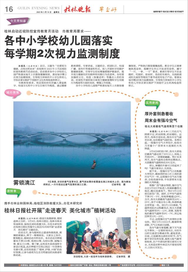 每学期2次视力监测制度   本报讯(记者邱浩)近日,主题为“关爱视力健康,点亮光明未来”的桂林市2023年3月近视防控宣传教育月活动启动。活动要求各中小学校幼儿园严格落实每天2次眼保健操制度,落实每学期2次视力监测制度,引导视力异常的中小学生和幼儿尽快在家长陪护下到医疗卫生机构检查和矫正。