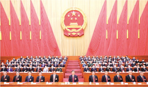 3月13日,第十四届全国人民代表大会第一次会议在北京人民大会堂闭幕。习近平等党和国家领导人在主席台就座。 新华社记者黄敬文 摄