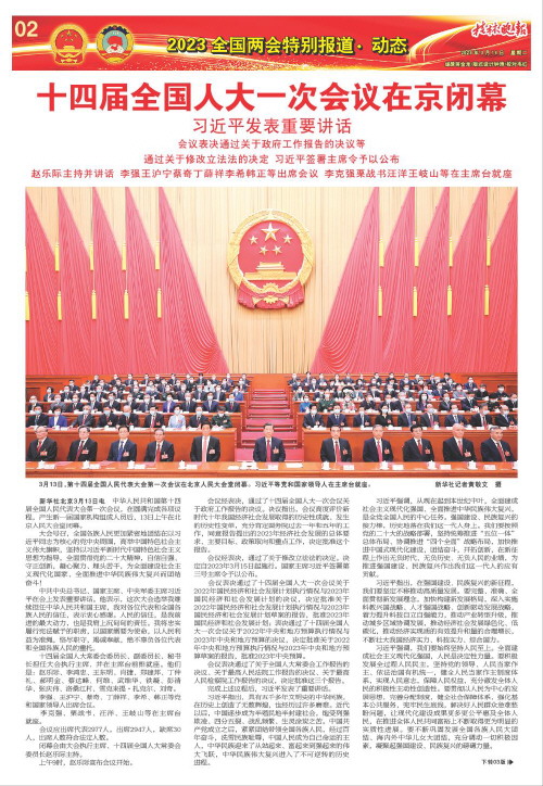 ——国家主席习近平在十四届全国人大一次会议闭幕会上的重要讲话激励全党全军全国各族人民信心满怀奋进新征程