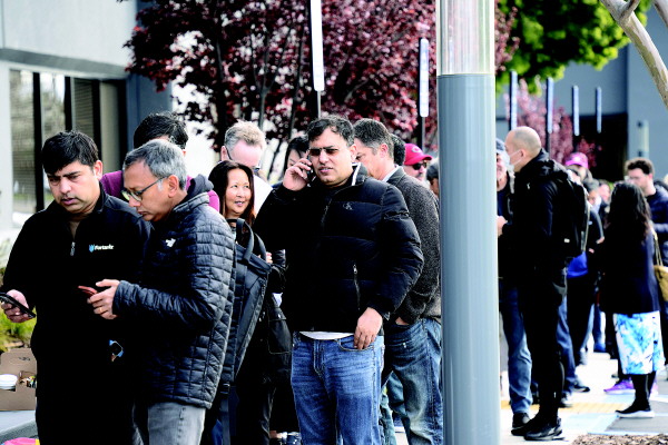 13日,加州圣克拉拉市硅谷银行总部外排起了长队。新华社发