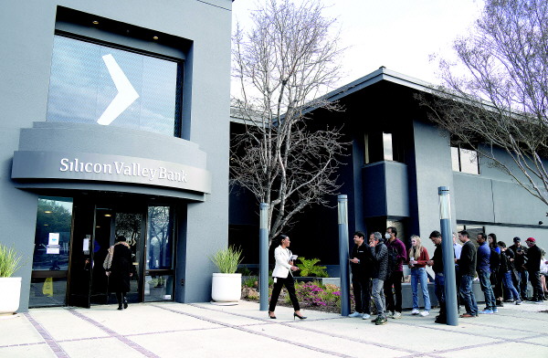 13日,客户在加利福尼亚州圣克拉拉市硅谷银行总部外排队等候办理业务。新华社发