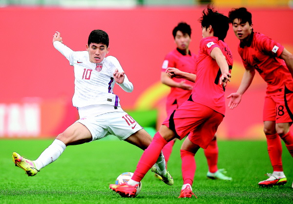 1/4决赛对阵韩国,中国队在小组赛比对手耗费更多体能和精力且两名主力累积黄牌的情况下,依然打出了惊喜。半场和对手打成0比0,下半场木塔力甫的“零度角”率先破门,让球迷们一度看到了胜利的曙光。