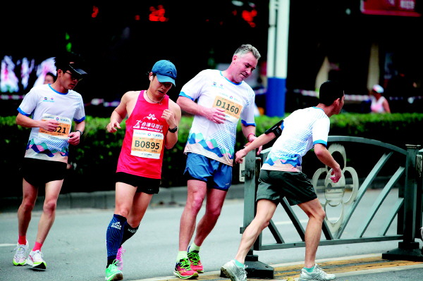 选手向赛道旁的市民热情挥手。 记者李凯 摄