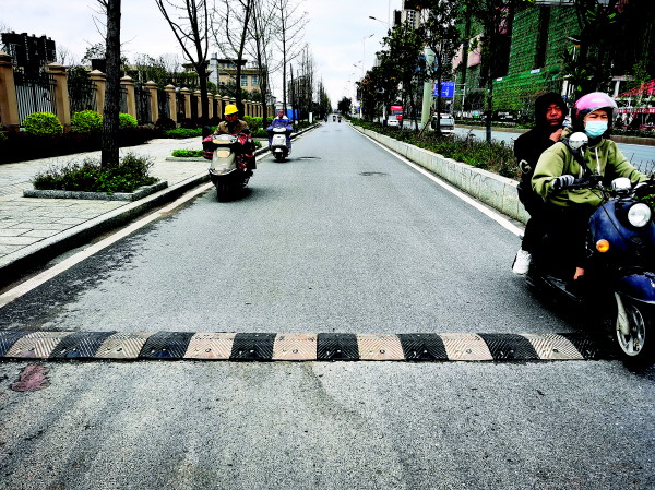 八里街一段非机动车道“多了”两条减速带