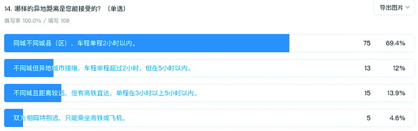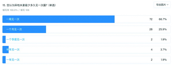 可以看出,被调查者普遍认为,异地婚姻的状态不宜过长,不然对夫妻双方来说都是巨大的挑战。