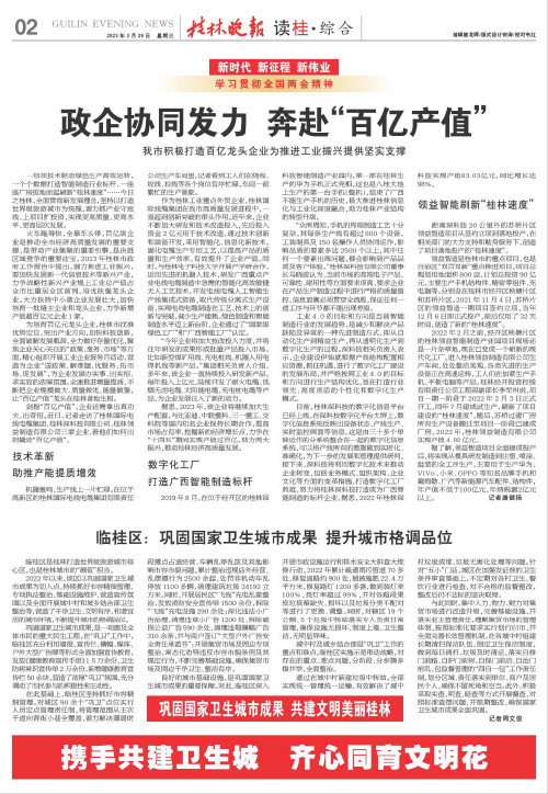火车跑得快,全靠车头带。百亿级企业是推动全市经济高质量发展的重要支撑,是带动产业集聚的重要引擎,是决胜区域竞争的重要法宝。2023年桂林市政府工作报告中提出,强力推进工业振兴,要加快发展新一代信息技术等新兴产业,力争战略性新兴产业规上工业总产值占全市比重居全区前列。培优扶强龙头企业。大力扶持中小微企业发展壮大,加快培育一批链主企业和龙头企业,力争新增产值超百亿元企业1家。