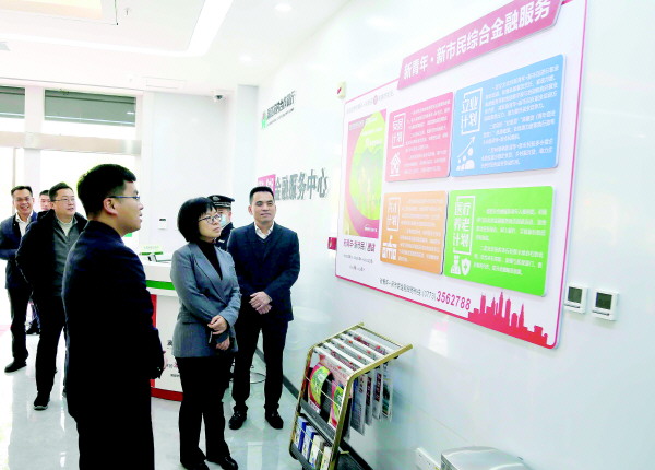 调研组视察指导漓江农合行新市民金融服务中心建设情况。记者周子琪 摄