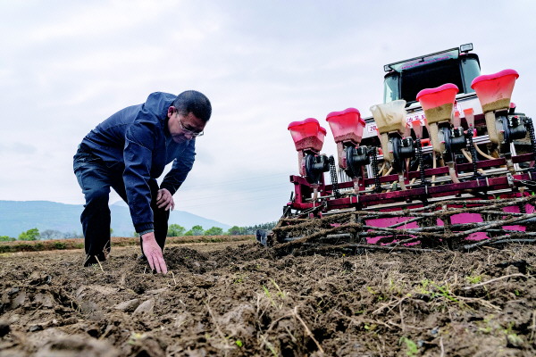 曾永忠说,今年是他们在这块田第一次用机械化播种,他说:“这个大豆玉米带状复合种植示范基地总面积406亩,3天即可完成机械化种植,只需要10来人参与。和传统的人力耕种相比,极大地提高了效率。”
