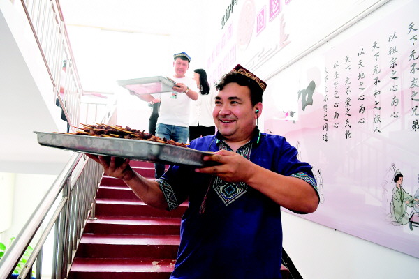 桂林市少数民族服务中心,维吾尔族群众烤制特色羊肉串。