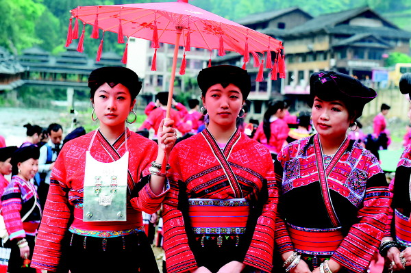 黄洛瑶寨的少女参加成年礼。