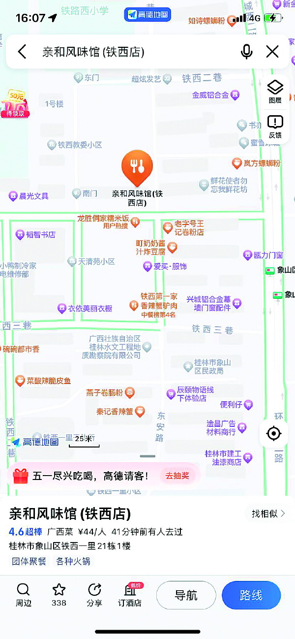 店内食客的口音几乎都是外地的,经了解他们大多数是来桂林旅游的外地游客。“我是从网上的美食攻略看到的,网友都说是必打卡的美食,果然没有让我失望。”一位来自浙江的食客说,本来还点了一个汤锅,但被老板拦住了,老板觉得母女俩吃一锅足够了,她就只点了一份干锅螺蛳牛排,菜品的分量很足,以至于这一锅都没有吃完,还让店员打包了,准备带回酒店吃。
