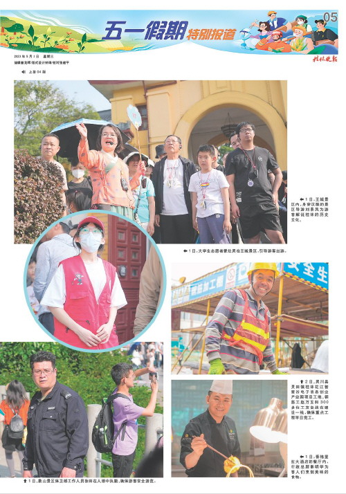 “五一”假期,我市各大景区人流如织。象山景区面向各地游客免费开放以来,吸引了众多游客前来参观,“五一”期间每天更是吸引了潮水般的游客前来打卡,在涌动的人潮中,30多位景区保安像“钉子”一般,坚守在景区的各个角落,确保游客出游顺畅;王城景区内,60多名景区导游身穿鲜艳的汉服,为游客讲解桂林深厚的历史文化,即便声音变得沙哑,依然用自己饱满的热情,让游客感触桂林的历史脉络;川流不息的市区道路上,交警忙着疏导交通,他们挥着双手,吹着警哨,来回穿梭在车流人潮之中;繁华的中山路主干道,环卫工人们忙碌着,假日里的垃圾量倍增,他们加班加点清理,确保市民、游客有一个干净、整洁的市容环境;在我市各大酒店内,无数的酒店从业者忙着接待蜂拥而至的客人,他们放弃了与家人的团聚,奔波忙碌,为客人带来舒心、满意的服务……