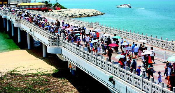 5月1日,游客在海南省三亚市南山文化旅游区游览。 新华社发
