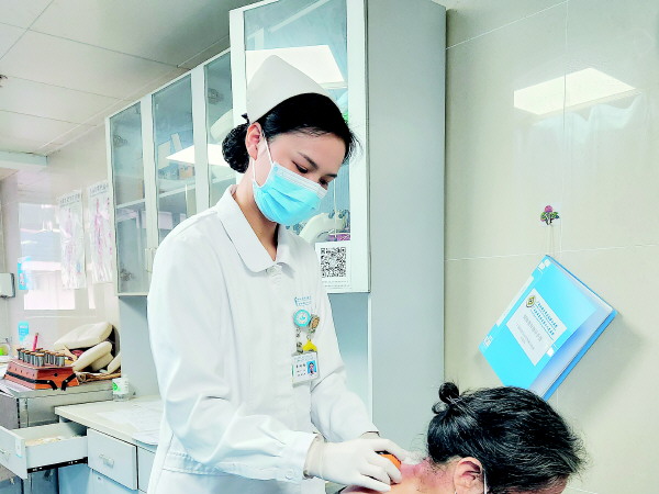 见到李珊珊时,她正在为科室的一位住院患者做治疗。在科室很多患者的眼中,李珊珊是一个细心又贴心的姑娘。