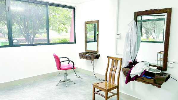 架空层位于小区的一楼,旁边还有绿化带,一到夏天,就有很多蚊虫。为了能让居民有更好的理发体验,今年,小区物业在此处建了一个小房间,安上纱窗,铺上瓷砖,让这一便民服务点更便民。葛叔叔说,来这里理发的居民有的自愿支付费用,他都一一统计在本子上,之后这些钱都会用在小区的公益事业上,形成一种良性循环。