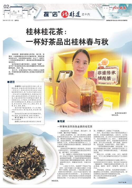 前几天,记者来到位于穿山小街的山水道茶坊,听桂林桂花茶非遗传承人讲述她与桂林桂花茶的故事。