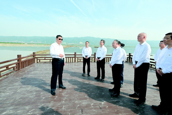5月16日下午,中共中央总书记、国家主席、中央军委主席习近平在前往陕西西安主持中国-中亚峰会途中,在山西运城盐湖考察。新华社记者谢环驰 摄