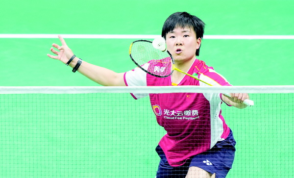 16日,中国队选手何冰娇在女子单打比赛中回球。新华社发