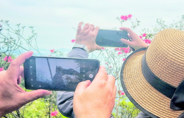 近日在猫儿山景区里,摄影爱好者被高山杜鹃花所吸引,举起手机捕捉这美丽的画面。殊不知,摄影者自己也成为了别人的取景对象。记者滕嘉 摄