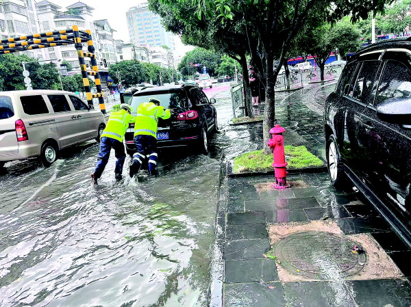 昨日上午,暴雨突袭桂林,各城区多条道路积水无法通行,但有暴雨积水的地方,就有交警“小黄人”执勤忙碌的身影,他们一直坚守在抗汛保畅最前沿,守护市民出行路。同时,桂林公路、高速公路、海事等交通运输部门也采取强有力措施,全力保障强降雨期间交通运输安全畅通。