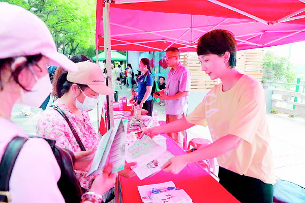 市旅游公共服务管理处工作人员为游客提供旅游资讯。通讯员黄婧韡 摄