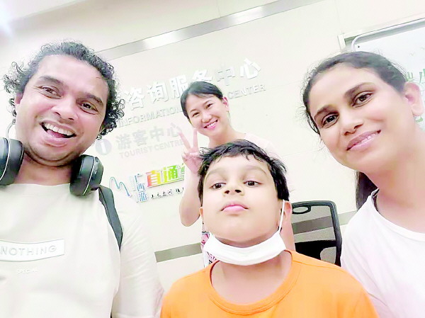 张芯源与来自斯里兰卡的游客合影。 (图片由市旅游公共服务管理处提供)
