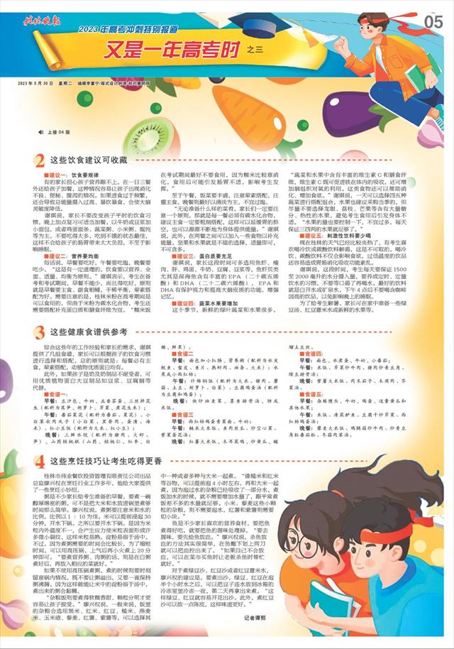 这份饮食攻略为备考“加分” 上接04版