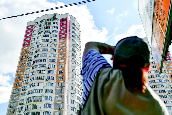 这是5月30日在俄罗斯首都莫斯科拍摄的受损建筑。新华社发