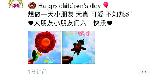 年轻人的朋友圈里,也到处弥漫着儿童节的快乐。