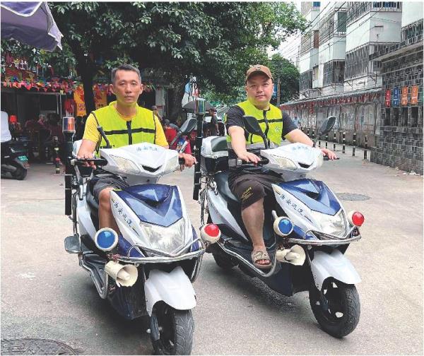 彭广杰说,2019年,他加入到村里的义务巡防队。他们队伍里的人员全都是自愿的,且不计报酬。后来,在村党总支跟东江派出所的组织下,他们还进行了专业培训,配备上了专用的巡防电动自行车,工作更加方便。