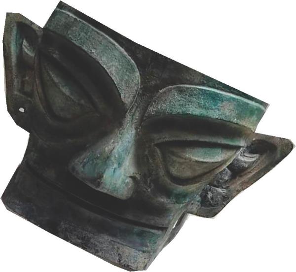 图为中国国家博物馆地下一层古代中国陈列区展示的四川广汉三星堆出土的青铜面具。记者邢刚 摄