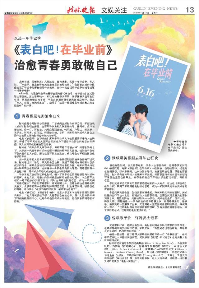 6月16日,为记录毕业季的青春喜剧电影《表白吧!在毕业前》正式登陆全国院线,正全国热映中。和以往的青春片不同,这部青春片没有主打怀旧,而是聚焦暗恋与喜欢,早在点映期间便收获无数观众好评,因之“好笑、甜美、充满治愈力”,获得了“这是一部温暖且有现实意义的喜剧佳作”的好评。