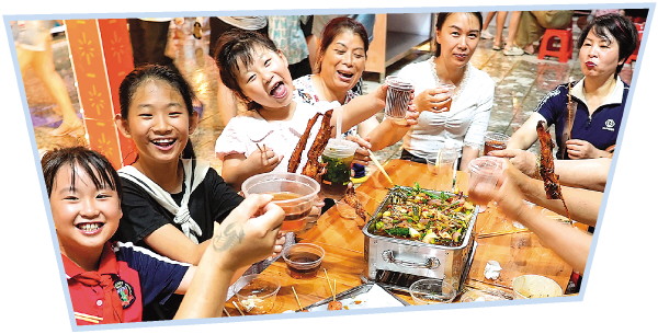 大河夜市里,一家人围坐在一起享受美食,享受生活。