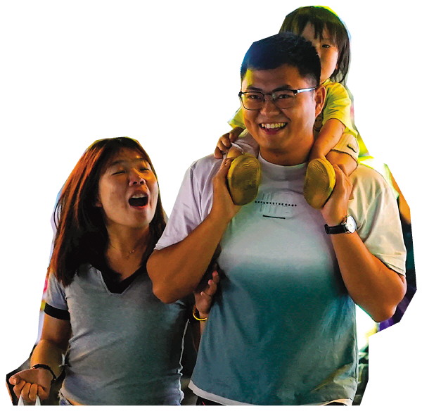 八里三路的夜市街上,一家人一脸幸福地畅游。