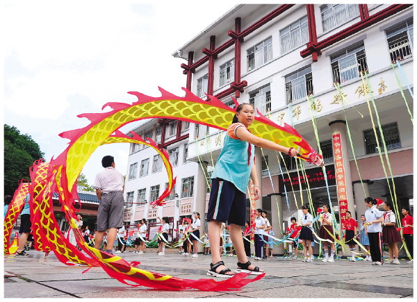 为进一步贯彻落实“双减”政策,探索符合学生个性发展、有效科学的创新性作业,中华小学的老师们精心设计学科课程,以游戏的形式将各学科基础知识融入到极富趣味性的“中华长龙”作业中,以激发学生学习的积极性和探究的主动性,确保在“双减”背景下减轻学生的课业负担,助力学生快乐健康成长。图为28日,各年级学生展示“长龙”作业。记者李凯 摄