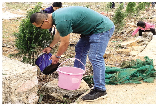 在“五彩作用”中“绿色”——党员带头美化环境这方面,和平村党员充分发挥了带头作用,今年植树节和平村新时代文明实践站党员组织各代表以及村民志愿者共80余人,到和平坟园开展以“爱绿护绿 你我同行”为主题的义务植树活动。