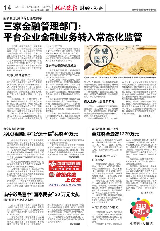 7日晚,中国人民银行、国家金融监督管理总局、中国证监会共同发布新闻称,目前,平台企业金融业务存在的大部分突出问题已完成整改。当天,三部门分别发布相关处罚决定,对蚂蚁集团及旗下机构、相关控股股东、负责相关业务的高级管理人员合计处以罚款(含没收违法所得)超71亿元,对腾讯集团旗下财付通及负责相关业务的高级管理人员合计处以罚款(含没收违法所得)近30亿元。
