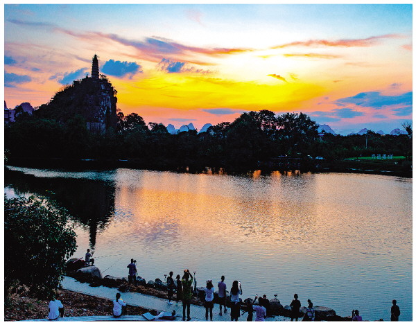 11日傍晚的穿山公园,远处的天空被染成橙红色,落日的余晖倒映在水面,水天一色,夕阳下的塔山美得像一幅画,吸引不少市民游客驻足拍摄,记录傍晚美好瞬间。记者李凯 摄