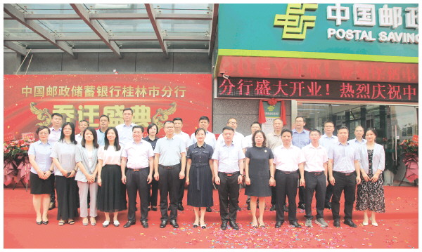 7月19日,邮储银行桂林市分行喜迁新址开业,以全新的网点环境、全面的金融服务迎接广大客户。临桂区人民政府副区长张莉彬、桂林市金融工作办公室副主任贺正蓉、人大代表彭涛、人大代表张振铭、中国邮政集团公司桂林市分公司总经理胡春勇、中国电信桂林分公司副总经理唐坤江、中冶交通广西分公司副总经理曾伟等政府部门、国有企业和民营企业领导参加了开业仪式。