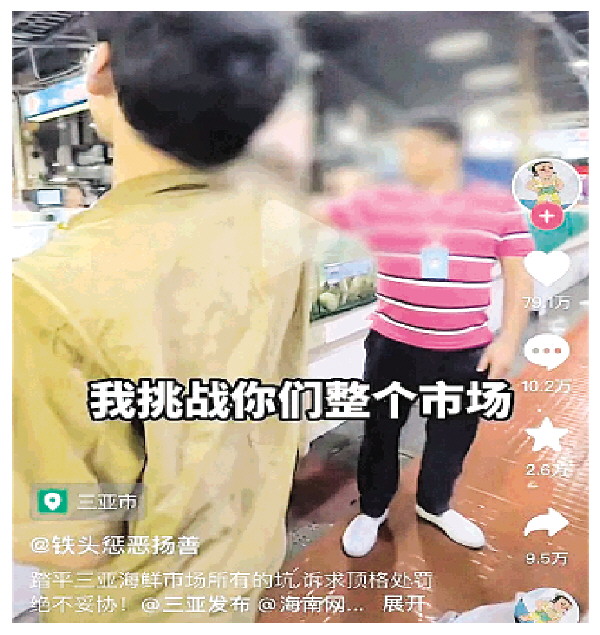 “什么玩意!丢三亚人的脸!”“退一赔三!这家店要么关门要么改正!”近日,在三亚海鲜市场,一位名为“铁头惩恶扬善”的打假博主在海鲜市场内咆哮,要求店铺关门并进行举报。